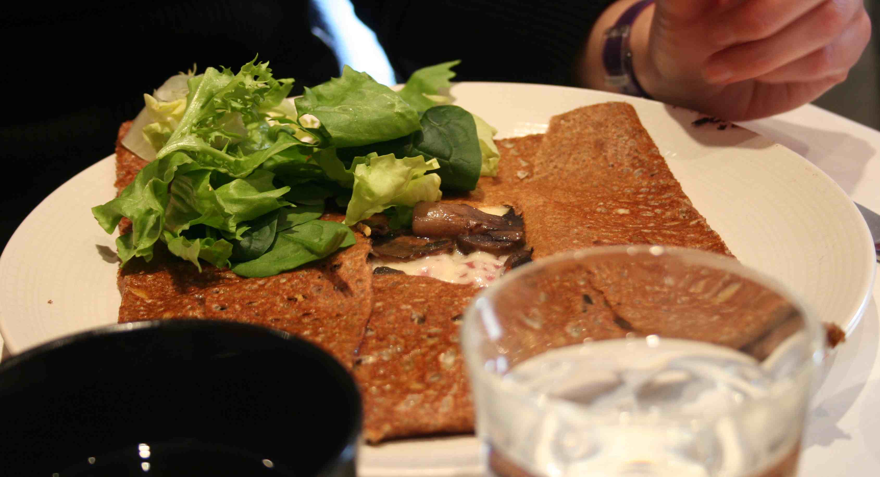 Fab : une crêpe aux champignons, une crêpe au nutella, avec une bolée de cidre