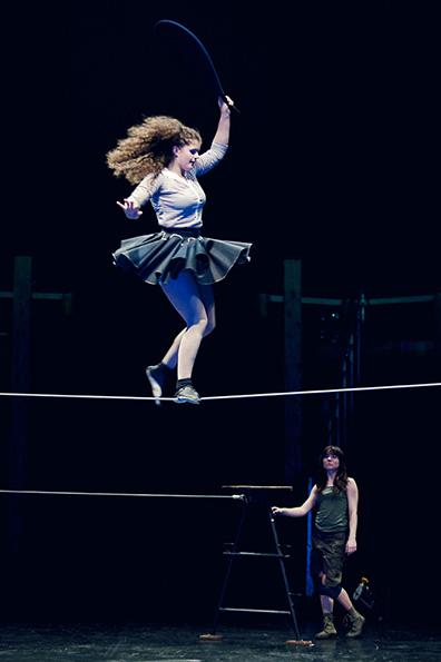 Les écrans géants diffusent des portraits photos des élèves, le musicien voyage autour de la scène et dans les airs pour accompagner les acrobates et les artistes caracolent par ci, par là. Se succèdent avec avec de beauté, numéro de sangles, fils tendus, acrobaties, mât chinois, jonglage, clown, magie… Un beau spectacle d’élèves en cours de formation comme on peut voir celui de l’école nationale des arts du cirque de Châlons-en-Champagne. Il aurait pu être plus abouti, mais cela reste un sympathique moment.