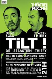 Alors là, il monte sur scène avec Bruno Solo où ils interprètent deux hommes en pantalons en tergal et jacquard dans un décor simple dans les tons ocres. L’humour est servi avec talent, délicatesse et beaucoup subtilité. L’humour est d’une part dans les mots mais surtout dans les silences, dans les regards et dans la gestuelle. La teinte de ce qui a provoqué le rire est noir et quel plaisir de rire de la mort, de l’amour, de l’étrange et même de dieu. Qu’est-ce qu’il est bon de rire intelligemment.
