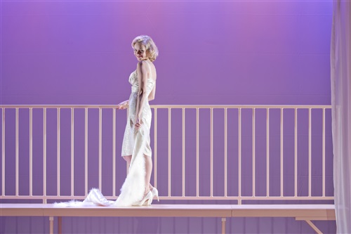 Je ne comprends pas la pudeur de la comédienne à ce changer devant le public dans le noir ou porter une nuisette couleur chair pour mettre une autre robe. Marilyn est une femme exubérante, aimant son corps et n’a pas de souci avec la nudité. Outre le fait qu’elle a fait des photos de charme dans sa jeunesse, l’actrice en parle et se cache derrière des artifices. Que cela signifie t’il? Une volonté de mise en scène ou un souci de confiance dans son corps de la comédienne ou la peur de choquer un public un peu pudibond? L’exubérance est pourtant bien jouée hors de ce corps pourtant sublime.
