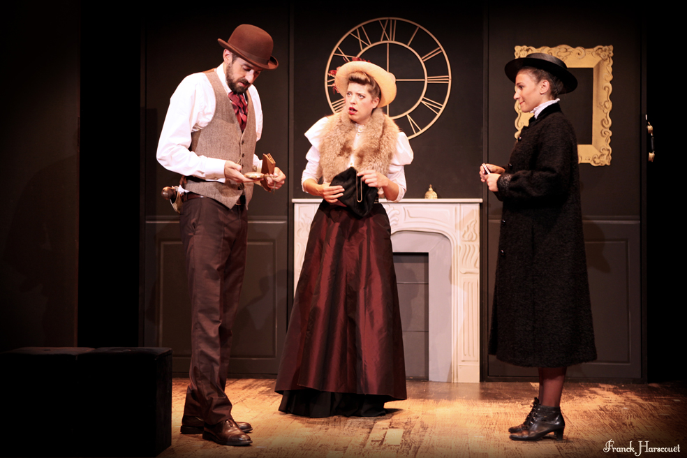 Une belle occasion pour Delphine Piard de montrer son talent de metteuse en scène en proposant une aventure de cambrioleur au grand cœur. Dans un décor simple mais très astucieux avec des décors à deux faces, des espaces cachés entre deux planches où sont rangés les accessoires (moustaches, barbes…) pour que notre héros change de têtes, des trompes l’œil bien peints avec les petits détails. Puis des costumes rappelant le début du 20ème mais pratique pour être retiré et remis rapidement sans faux plis. Car oui, n’oublions pas qu’Arsène est bien un cambrioleur, il est parfois utile de mettre une tenue de camouflage.