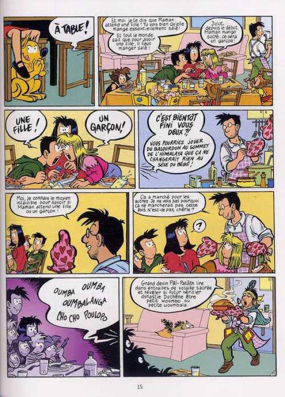 L’album débute avec cette dédicace : Cet album est dédié à toutes les mamans du monde, et surtout à la mienne. Voilà un petit préambule qui prévoit une histoire toute en douceur et en tendresse. La famille Duchêne va s’agrandir avec un nouveau bébé. L’identité du sexe reste secrète et les enfants ont décidé d’ouvrir des paris créant des tensions à la maison. Donc toute la tribu à décider de le prénommé Bubulle. Le jour de la naissance est très attendue surtout depuis que la maman est tombée dans les marches. Surtout que le sac à puces à le droit maintenant de rester maintenant.