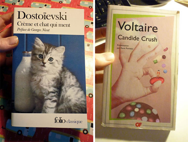 L’auteure ne se refuse rien : jeux de mots, homonymie, anagrammes, contrepèteries… Tout est bon pour détourner des titres. Pour ne pas laisser le lecteur dubitatif, quelques lignes donnent des explicatifs sur le livre, l’auteur, l’histoire et le titre. Alors d’un côté, on peut rire et de l’autre s’enrichir. Surtout que les couvertures sont celles des éditions originales qui m’ont rappeler des souvenirs de jeunesse. Il faut tout prendre pour tromper l’innocent et le pousser à chercher l’erreur car oui, il y en a toujours.