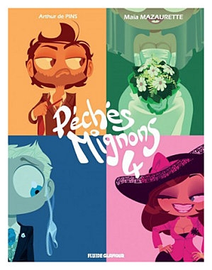 Une couverture qui appelle forcément à la lecture avec ces couleurs accrocheuses. Deux hommes, deux femmes, une robe de mariée, un costume de marié, une tenu pour un mariage et un costume habillé. Voilà le ton est donné autour du mariage. Partons à la découverte de quatrième Péchés Mignon.