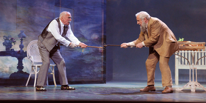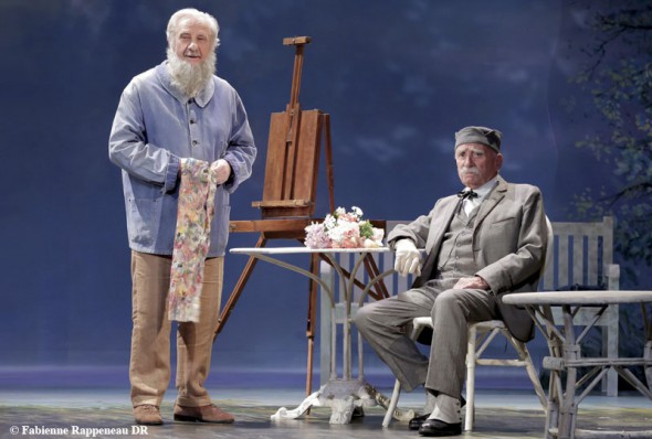 Philippe Madral, l’auteur décide de raconter l’histoire assez peu connue entre ces deux hommes forts de la société française que sont Georges Clémenceau (Claude Brasseur), le politique et Claude Monet (Michel Aumont), l’artiste, octogénaires, liés par l’amitié. Tous les deux âgés avec la vue qui baisse, le corps se fatiguant et de mauvaises habitudes, ne sont pas des tendres. Alors quand Monet avoue avoir détruit les Nymphéas promis à l’Orangerie, le Tigre sort les griffes et rugit de colère qui va aller jusqu’à un combat de cannes. Sous ces répliques autour de la création artistique, c’est véritablement l’angoisse autour la présence de la vieillesse, de la solitude et de la mort prochaine qui sont abordés.
