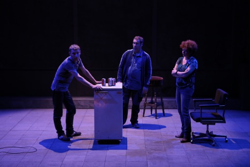 Un spectacle engagée qui n’hésite pas à parler de l’économie mondialisée qui laisse des familles entières et des villes dans le désarroi le plus complet. On pourrait croire avec le sujet un affrontement des méchants riches contre les gentils pauvres mais ce n’est pas cela. Car cette situation ne peut se limiter qu’à ces frontières grossières car les implications sont multiples entre ceux qui soutiennent, ceux qui laissent faire en ne disant rien, ceux qui disent et qui ne font rien, ceux qui s’en foutent, ceux qui ne peuvent que subir et pleurer… Patrons, politiques, banquiers, médias, artistes, bourgeois, alcooliques… tous y passent, sans complaisance. On n’est pas ici pour faire de bons sentiments. Le texte est direct, drôle, pétillant… et servi avec une qualité de jeux très appréciable et surprenante. Les décors bougent, les comédiens courent, chantent, dansent, ouvrent des bières accompagnés deux musiciens très compétents (Quentin Halloy et Philippe Lecrenier). On passe d’un bar à un appartement, puis direction la rue, la route… Et pour raconter une partie de l’enlèvement, rien de tel qu’un bon petit film qui se marie à merveille dans la mise en scène.