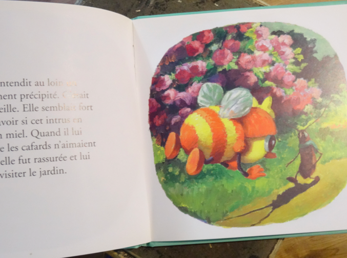 J’adore cette idée de prendre un cafard et de jouer avec le sens du mot. Et puis cet insecte qui est assez répugnant dans la réalité est assez mignon ici. Il porte même une écharpe et des gants pour se protéger du froid. N’est-ce pas trognon? L’histoire est adorable et l’idée qu’un personnage lutte contre la morosité est géniale. Pour l’instant, c’est ma préférée drôle de petites bêtes.