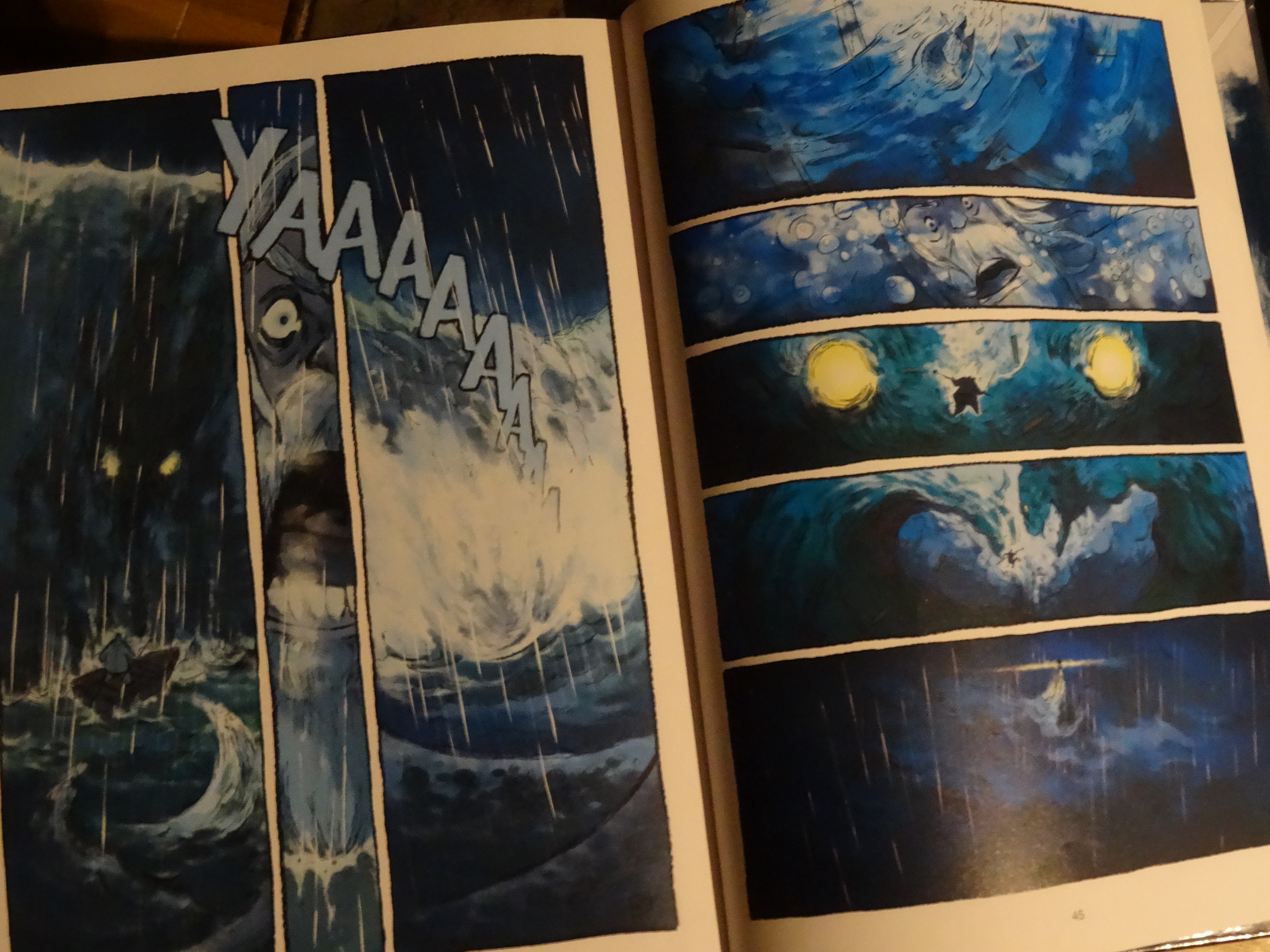 J’adore toujours autant le dessin et la mise en couleurs de Valérie Vernay, que j’avais découvert dans le premier tome, surtout les périodes bleus avec les intensités différentes. Le tome 2 révèle toute l’histoire et le sens des couvertures avec notre héroïne dans l’eau. Très bien joué de la part des auteurs et de la maison d’édition. Et puis, c’est l’occasion pour eux de vendre deux fois plus de livres même si un seul ouvrage aurait été suffisant. L’histoire était plaisante et très touchante surtout lorsque notre héroïne apprend une vérité sur son histoire et qu’elle devra conserver le secret à jamais.