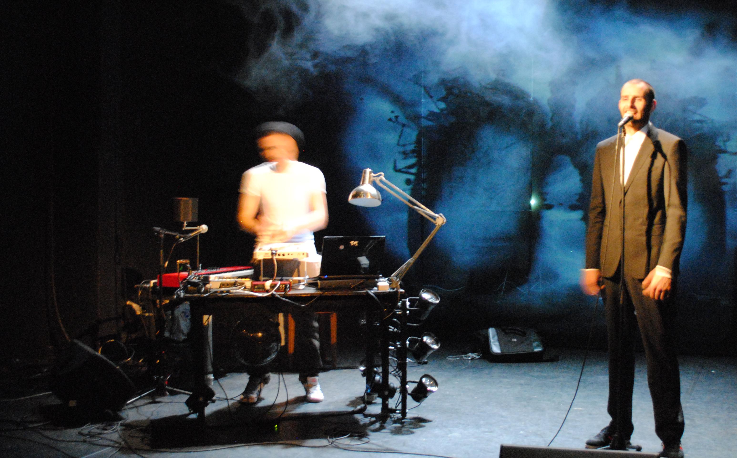 Sur scène, à gauche, Mochélan, grand, mince, mal rasé qui arrive tranquillement face à son micro. A ces côtés, le très charmant musicien, Rémon Jr, qui ne s’exprime qu’avec des doigts en installant une base rythmique pour accompagner le slameur. Pour les accompagner sur scène on trouve une surprenante narration vidéo créée par le collectif Carolo Dirty Monitor, des photos de Juliette Delpech et les lumières de Virginie Strub. Un ensemble créatif très cohérent qui donne un spectacle hors du commun. Surtout que ce n’est pas une succession de chansons, c’est une véritable histoire d’un homme qui nous est conté, où le public est pris à partie entre des nuages de fumée, avec des interactions avec le musicien et des échanges sarcastiques avec l’équivalent du Pôle Emploi belge.