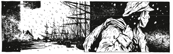 Je ne suis pas toujours très fan du travail de Chabouté, mais il faut dire qu’ici, j’ai adoré son travail sur le noir et blanc avec l’alternance de moments de pause et d’actions. Les pages se tournent avec curiosité pour découvrir au fur et à mesure qui ce capitaine obsédé et pourquoi l’est-il. Les autres personnages, sont moins intéressants même s’ils contrastent avec la folie de notre héros unijambiste. Les dialogues sont très juste et vif même si je ne sais pas dans quelle proportion ils sont fidèle au roman. Il ni a pas à dire, il y a du suspens, de la tension dans ces pages et j’ai hâte de lire le livre deuxième même si je connais déjà la fin. Quel filou ce Chabouté.