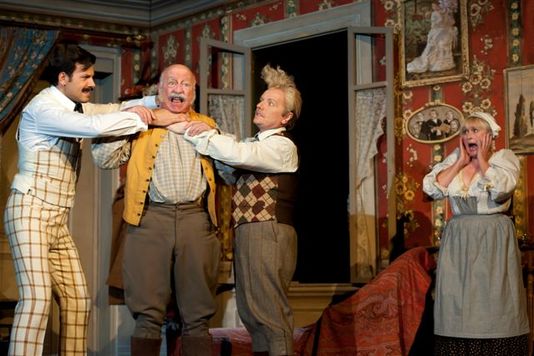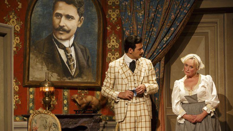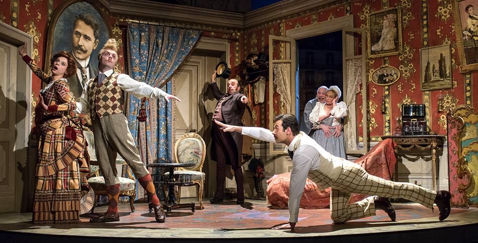 Le décor est raccord avec les costumes des comédiens, tout en accord avec le jus 1890. Une élégance extravagante poussée au détail prêt comme le fameux postiche de M. Ribadier chipé par un chien. Un vrai chien d’ailleurs. Où derrière un paravent faire croire qu’il y a un escalier et voir les comédiens faire semblant de descendre les marches ou prendre l’ascenseur. Des petits détails qui accompagnent le jeu très exigeant que peut demander ce genre de spectacle. Les comédiens courent, sautent, voltigent, bondissent, grimaces, se contorsionnent de milles façons pour accompagner avec ingéniosité les comiques de geste et de situation.