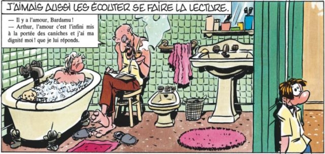Une bande dessinée, légère comme un baiser ou un murmure au creux de l’oreille créant un éphémère moment de bien-être. Une couverture sobre, du papier épais et confortable pour la lecture, tout est mis en œuvre pour faire passer au lecteur un bon moment de lecture. J’ai aimé l’approche de l’histoire. Ce n’est pas un texte brut, qu’aurait pu écrire Daniel Pennac qui explique le pourquoi de l’histoire. Ce sont des bulles avec des dessins colorés qui contextualisent le cadre de la rencontre et qui évolue vers l’histoire directement. Le lecteur est dans ce bistrot avec les autres consommateurs à écouter les échanges qui deviennent récit. Même si l’histoire est bien trop courte à mon goût avec une police assez grosse, j’ai apprécié la lecture qui a l’avantage de se lire vite, de se comprendre vite et de prendre une douce dose de bonheur pour aller se coucher apaiser.