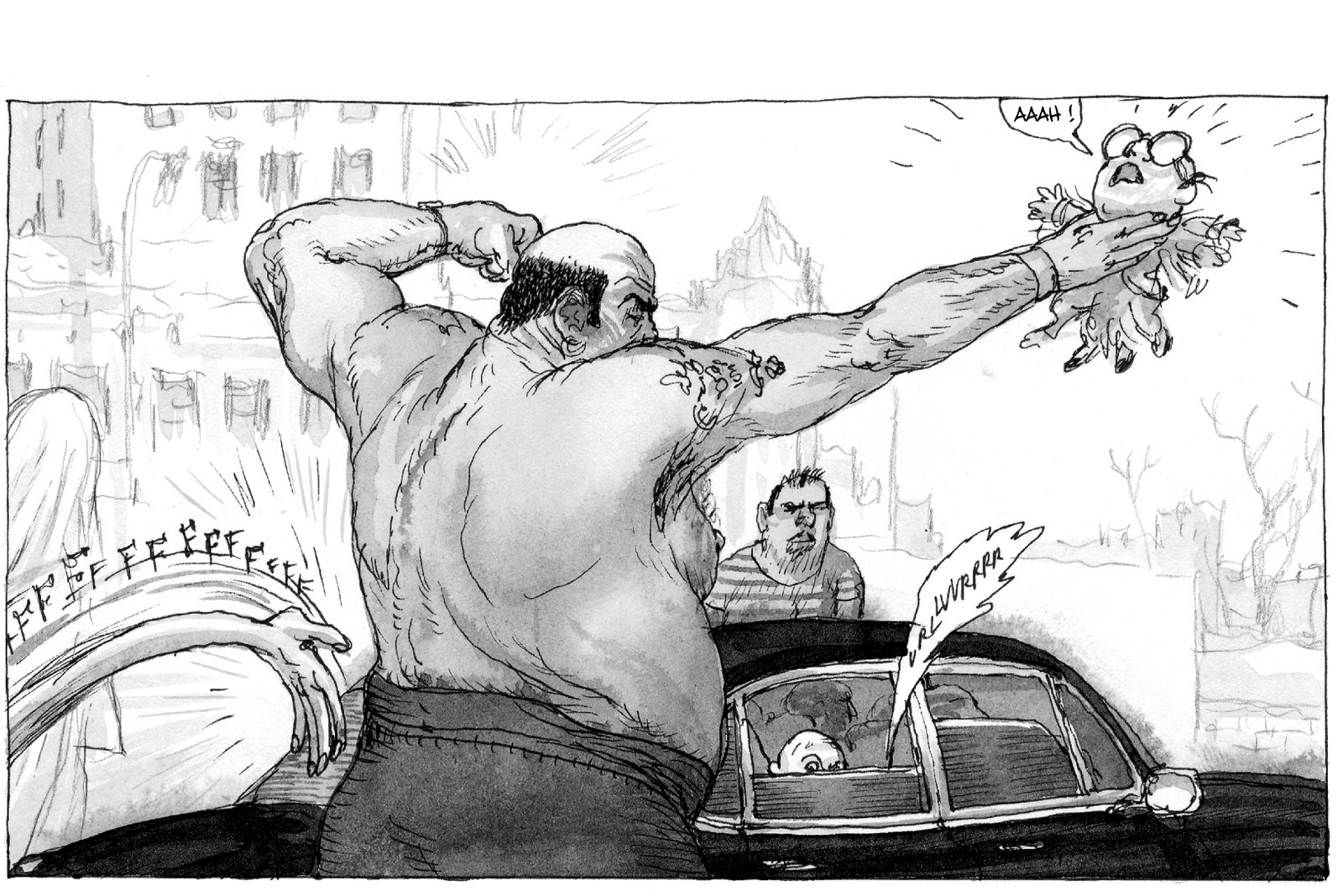 Nicolas de Crécy fait parti de ces créateur qui s’affirme un style bien à lui qui ne plaît pas à tous. Un dessin très reconnaissable et un univers où l’étrange règne en maître. Etes-vous prêt pour aller à la rencontre de gros vilains et de gentils fantômes dans La République du Catch?