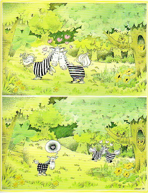Le hasard m’a fait découvert cette bd qui m’a fait pensé aux albums de Mordillo que je lisais plus jeune. Il est bon de rire simplement. Une image peut communiquer tellement de choses. Un vrai travaille d’orfèvre qui doit demander beaucoup de refléxion. Faire rire tout en faisant réfléchir, n’est pas chose aisé. En tout cas c’est réussi, car j’ai pris beaucoup de plaisir à lire, à regarder plusieurs fois la page, à regarder les détails.