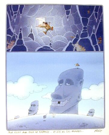 C’est de 1975 à 1989, dans le Journal de Tintin qu’Ersnt publie ces images humoristiques Clin d’oeil qui serait par la suite édité en 9 tomes. Le dernier tome propose aux lecteurs de découvrir ou redécouvrir les meilleurs gags. Même si tous les sujets sont présentés en une ou deux images, on retrouve quelques thématiques autour de la nature, le nucléaire, la religion ou les chats. L’humour et la gentillesse sont de mise, nous sommes à l’opposé des Idées Noires de Franquin même si certains messages sont identiques.