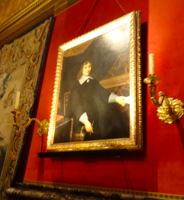 Au milieu de la salle trône le portrait de Nicolas Fouquet en costume sombre assis à sa table de travail, réalisé par Charles Le Brun.