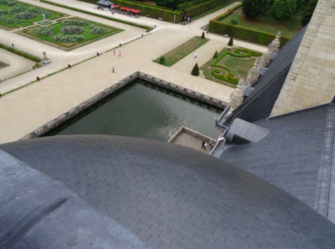 L’ensemble du jardin est marqué par une perspective corrigée : plus les éléments d’architecture du jardin sont éloignés du château, plus ils sont longs ou hauts pour compenser la perspective.