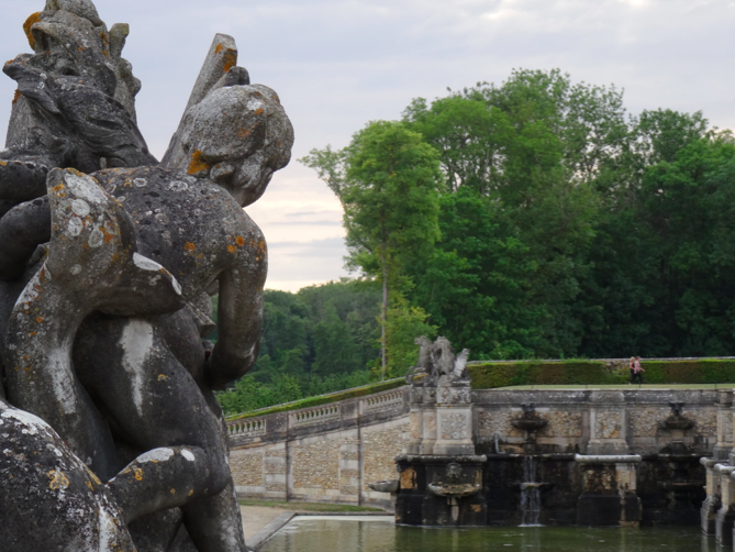 Le jardin est aménagé sur un axe de 3 km qui traverse la demeure de part en part. Il est habité de statues allégoriques, de figures antiques et mythologiques, de nymphes, de dieux, déesses et de héros symbolisant la puissance et l’influence de Nicolas Fouquet.