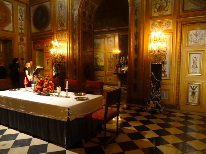 La déception va se faire sentir très vite. Comment 2 000 bougies peuvent illuminer tout un château et un si grand jardin ? Mais il fallait prendre en compte qu’il existe de bougies illuminé grâce à la fée électricité. La plupart des pièces sont éclairées avec des lumières électriques dont beaucoup en forme de chandelier. Quelques rares pièces sont illuminées qu’à la bougie. Et l’effet est saisissant avec les jeux d’ombre et de lumière. Dommage, qu’au final il y en a peu et cela reste un éclairage, pensée mais électrique. J’avais eu la même déception lors de la visite du musée des lettres et des manuscrits à la chandelle. C’était un titre pour faire jolie, aucune bougie n’avait été allumée. Par contre, le jardin est très joli. J’aurais aimé être là le 17 août 1661 pour voir la magnificence de ces lieux.