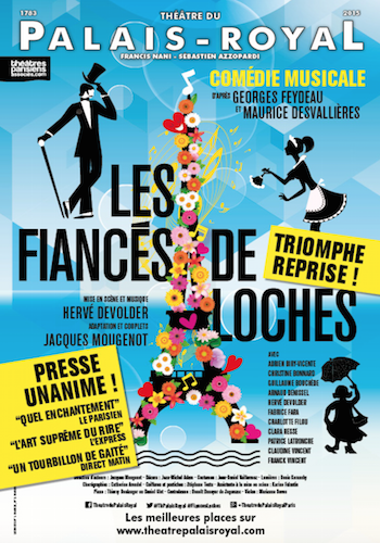 Les Fiancés de Loches est une œuvre de jeunesse de Georges Feydeau sur les mœurs de la petite bourgeoisie provinciale de la Belle Epoque. Il l’a écrite à l’âge de 26 ans avec Maurice Desvallières et joué le 27 septembre 1888 au Théâtre Cluny. Depuis 2014, la pièce est interprétée par 9 comédiens (Christine Bonnard, Charlotte Filou (irrésistible Michette), Clara Hesse, Claudine Vincent, Adrien Biry-Vicente, Arnaud Denissel, Fabrice Fara, Patrice Latronche, Franck Vincent), talentueux et ultra dynamiques sur les planches du Palais Royal. 20 chansons ont été spécialement créées par Jacques Mougenot et Hervé Devolder.