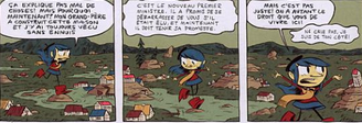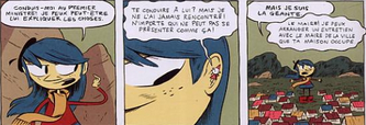 J’ai tout de suite été séduite par la couverture et la tranche brillante avec de petits motifs. L’histoire extraordinaire de la petite se lit très bien. Je me suis attachée à cette enfant qui aime lire, se bat pour ces idées et prend le temps de discuter avec les gens quelqu’ils soient. Le dessin approximatif correspond bien à l’esprit enfantin voulu. En tout cas, j’ai assez aimé pour lire les autres tomes si la médiathèque les possède.
