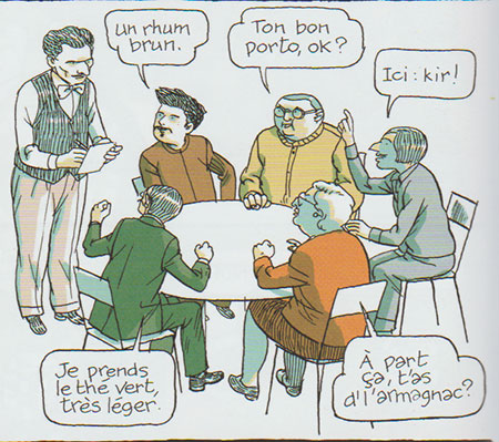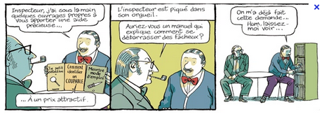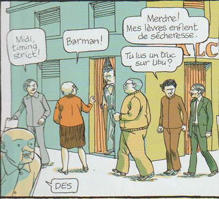 Les personnes décapités ou éventrés ne sont que prétexte à découvrir les biens étranges habitants. C’est une histoire à prendre au pied de la lettre. Littéralement. Cette bande dessinée fait partie de l’Oubapo, version bd de l’Oulipo. D’ailleurs, François Ayroles fait un petit clin d’œil à Georges Perec qu’il l’intègre comme personnage important qui lui ne parle pas. D’autres références sont présentes toutefois mon manque de culture G ne permet pas d’en identifier plus.