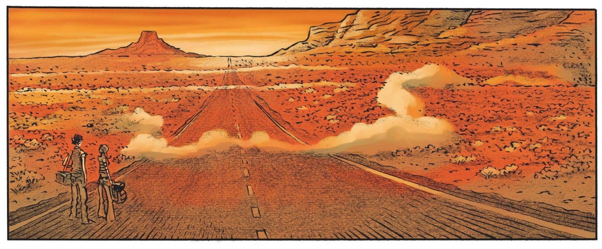 Le scénario respecte la chronologie du récit, fidèle dans le déroulé comme le souvenir que l’auteur en a gardé. Le rêve si plein de couleurs fini par un trajet dans les noirceurs d’une société où la misère et la pauvreté sont présentes partout. En plus, le trajet fait environ 4 679 kilomètres de bout à bout. L’esprit des habitants varie selon les lieux, cela se ressent beaucoup selon le rapport aux armes et aux étrangers. Certaines rencontres étaient sympathiques quand même. Le plus important est le fait que cette aventure a rapproché les deux jeunes qui sont maintenant marié et parents de jumeaux. D’ailleurs, ce récit c’est un peu pour eux aussi qu’Eric Cartier l’a fait.