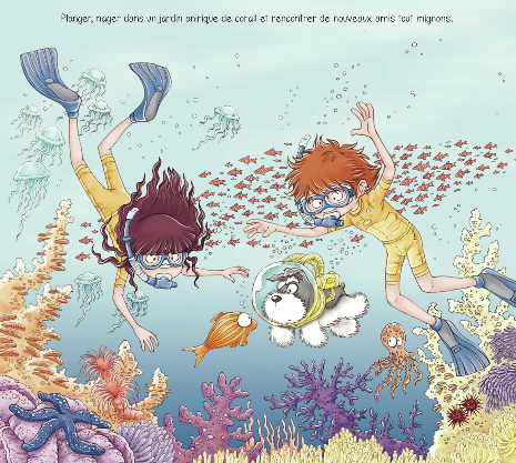 C’est une bande dessinée sans bulle pour les enfants à partir de 6 ans. Un livre avec très peu d’écrit et des phrases très courtes. Les dessins de Chuan Yin sont vraiment très beaux et très bien mis en couleurs. Les teintes sont douces inspirant confiance et réconfort. Toutefois, je me suis terriblement ennuyée en tournant les pages en me demandant quand est-ce qu’il allait se passer quelque chose. Je suis vraiment trop grande pour ce genre de bd pour les tous premiers lecteurs.