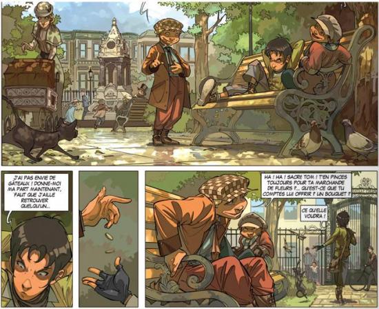 Dès la première page j’ai été totalement séduite. Cet album très bien écrit avec une enquête rudement bien mené qui mêle suspens et aventure. Black Tom a repéré un détail qui a permis de pouvoir identifier l’homme par la suite. Tout se fait doucement et rien n’est facile, surtout dans un Londres de la fin du 19ème siècle. Le récit est digne d’un bon roman dans sa structure. Des dessins très travaillés, des couleurs très nets et une histoire fabuleuse. Suivre des gamins des rues qui sont bien malins et terriblement attachants. Tout dans leurs personnalités sonnent juste. Alors quand le premier album se termine, c’est le bonheur de ce dire qu’il y a une suite qui fait plaisir. Je vais pouvoir le retrouver et faire encore un peu plus leur connaissance.