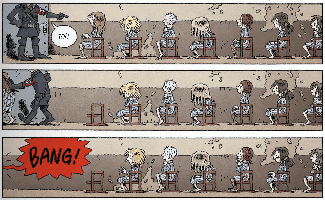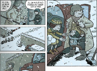 Pour mieux indiquer au lecteur quand se situe l’histoire des jeux de couleurs plus ou moins foncées ou avec un fond noir ou blanc sont utilisés. Des intégrations très bien réalisées avec beaucoup de finesse et d’intelligence. Tout est très bien organisé dans l’ensemble et tout semble cohérent. Les pages se tournent avec curiosité et passion pour découvrir ce qui va se passer. On s’attache à tous ces personnages qui donnent le meilleur d’eux et on espère qu’ils vont arriver à leurs objectifs.