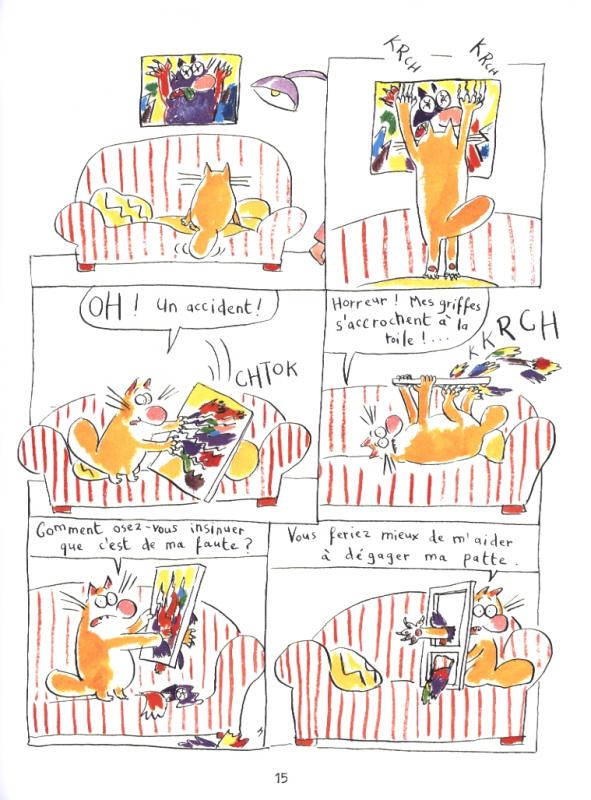 Lorsqu’elle va revenir son oeuvre sous le bras, c’est toute la famille qui va être étonné du résultat. Le matou ne va pas du tout être heureux de l’honneur qui va lui être rendu. Pour la peine, il va devoir faire ces griffes dessus au grand désarroi d’Elie.