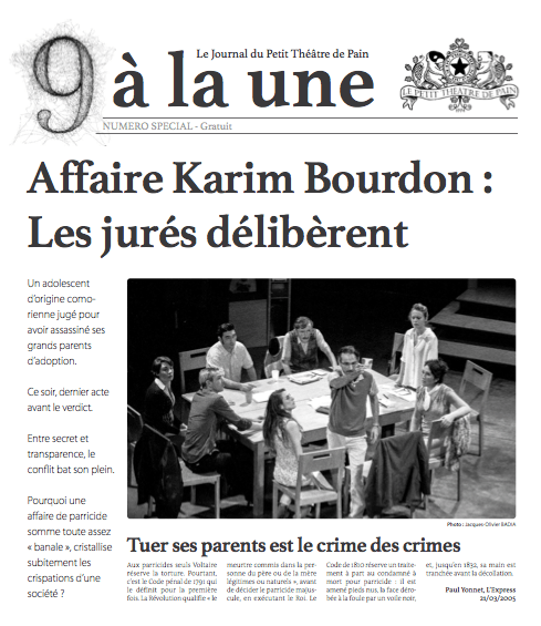 9 car il y a 9 jurés dans cette délibération. 5 hommes et 4 femmes qui vont devoir à l’unanimité choisir si le jeune Karim est innocent ou coupable. Un huit clos qui ne laissera personne indifférent.