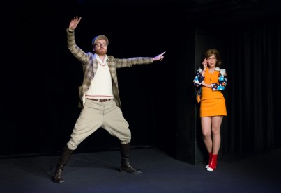 Comme la pièce original dure plus de de 2h00, c’est un format trop long pour ce petit théâtre. Alors il faut grosso-modo raconter la même histoire en moins d’1h30. Voilà un défi qui ne leur semble pas impossible. Mais attention les puristes, cette pièce est de très libre imagination. Alors attends toi à voir des êtres étranges bleus très stupides, des reprises de variétés, des costumes et des couleurs pop sixties.