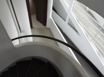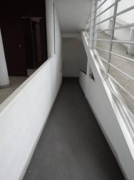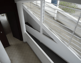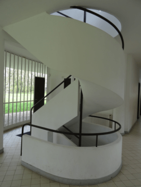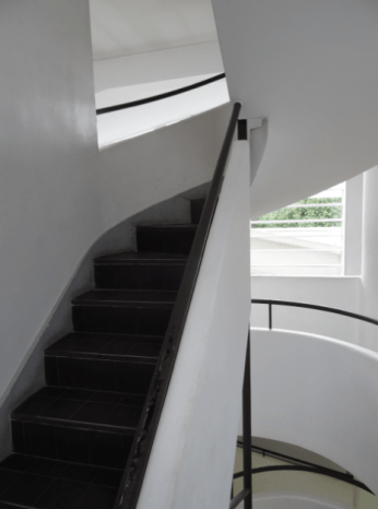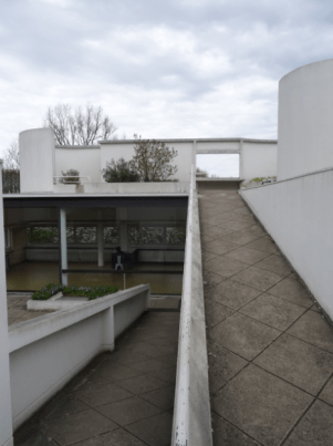 Les personnes rentrent et se trouvent face à une rampe recouverte de linoléum pour se rendre au premier étage. Le Corbusier nomme cela une promenade architecturale.