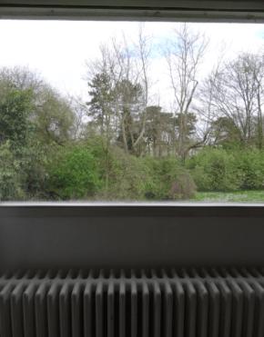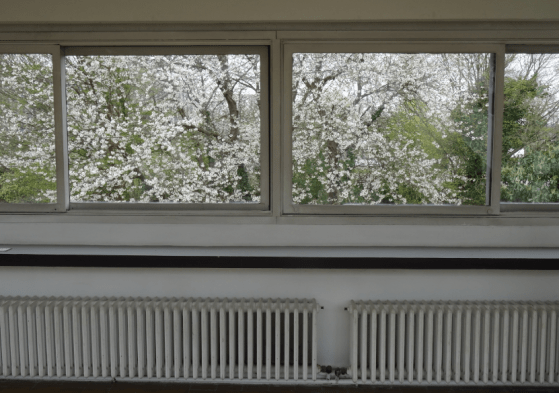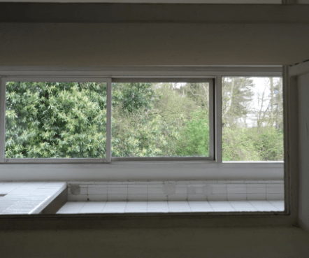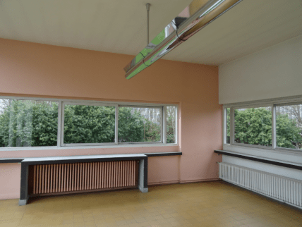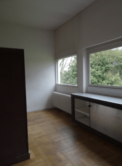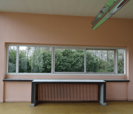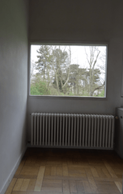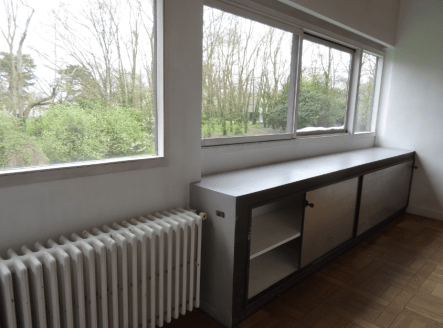 Sur l’ensemble du deuxième étage, un bandeau de fenêtre en entourage bois est placée sans interruption en façade. Ainsi où que vous soyez vous avez une vue sur la nature environnante et une clarté dans toute les pièces. D’ailleurs, c’est cette luminosité qui va inciter les époux Savoye à nommé leur résidence : « Les Heures Claires ».
