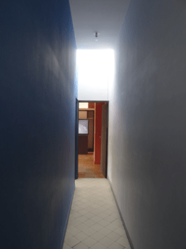 Lorsqu’on arrive en haut de la rampe on se trouve presque au centre de l’espace qui est séparé en deux.