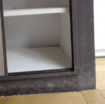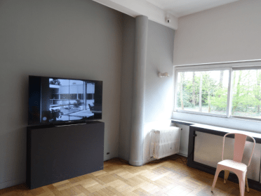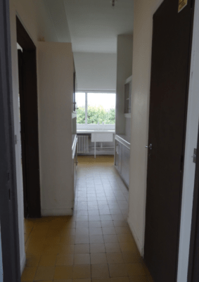 Dans l’actuelle boutique de vente de livre, se situait la chambre de bonne avec des placards intégrés comme dans l’ensemble de la construction. Le sol est recouvert de parquet contrairement aux autres espaces qui sont recouvert de carrelage. Cette distinction se fera dans tous le bâtiment. Un toilette.