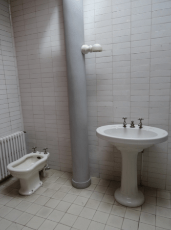 La salle de bains est beaucoup plus grande et spacieuse puisqu’on va y trouver une baignoire en plus d’un bidet et d’un lavabo.