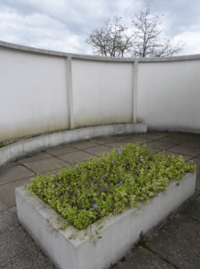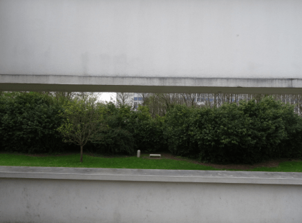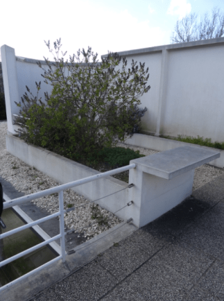 Le reste est entouré un voile de béton avec des formes courbes accompagné de bacs végétalisés.