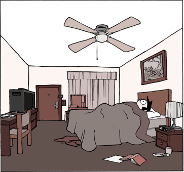 Après un certain temps, il a repris le travail mais le coeur n’y est plus. Le gouffre de la noirceur devient de plus en plus profond. Une solution alors lui vint à l’esprit. Direction un motel où il prend une chambre. Une fois à l’intérieur, il rédige une note expliquant son geste puis va se pendre. Mais voilà que quelques minutes plus tard il se réveille dans une chambre du motel.