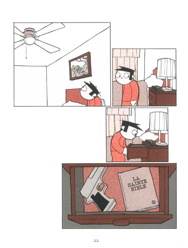 Jason Shiga afin de ne pas surprendre son lecteur, il explique tout dans l’avant-propos : « Si vous êtes un enfant, merci de reposer ce livre calmement et de vous en aller. Les personnages disent des gros mots réservées aux adultes. Par exemple, le meurtre, les relations sexuelles homme-chameau ou l’usage de stupéfiants. Et passez votre bac d’abord. Mais si vous êtes un adulte, oh là là! laissez-moi vous dire que cette histoire va vous faire halluciner! Vous êtes parti pour un de ces kifs! » .