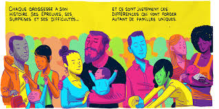 Les changements se font petits à petits. C’est pour cela qu’en entête de chaque semaine, le dessinateur montre l’évolution dans la taille de son enfant. Et pour que l’image soit la plus compréhensive possible, l’enfant en développement est comparé à un fruit ou un légume comme un petit pois, un poireau, des blettes, une banane, une pêche….
