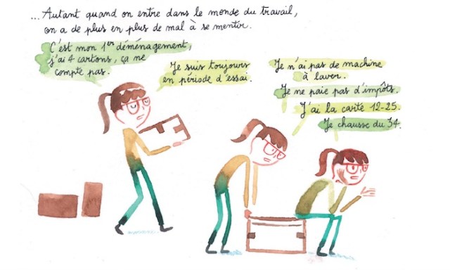 La dessinatrice impose un style avec décontraction en se mettant en scène. Ainsi elle ne se moque ni d’un voisin, ni d’un ami, ni d’un quidam. Il y a juste un peu son ami qui est moqué mais c’est une marque d’amour.
