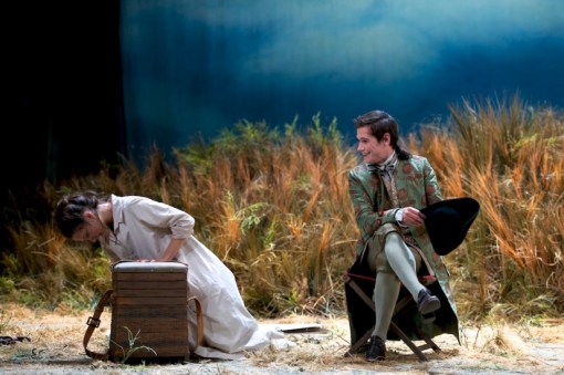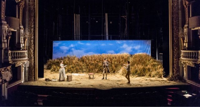 C’est sur une dune aux longues herbes folles posée sur la grande scène nue de la salle Richelieu que les mots de Marivaux résonnent. Argent, mariage, sexe, ambivalence, valet/maître, province/paris, bourgeois/aristocrate, vrai/faux serments vont s’entremêler pour une réflexion. L’auteur a encore de beaux jours sur les planches du français.