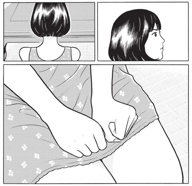 L’histoire ne m’a pas trop emballée avec un rythme très lent et des personnes très particuliers. J’ai aimé par contre la simplicité des traits et aussi la construction de certaines pages avec des gros plans de choses qui n’ont pas forcément de lien entre eux. Et aussi ce travail de mettre en avant des détails comme les mains (doigts recroquevillés, poings serrés, paumes ouvertes…), les pieds (nus ou chaussés), les gens vus de dos… L’esthétique est très intéressante et se rapproche beaucoup d’un travail photographique. Il met en avant des gestes triviaux. L’important n’est pas toujours dans les mots.