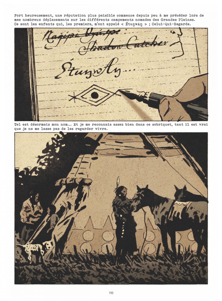 Lorsqu’il va revenir chez lui, il n’a plus qu’une obsession. Repartir à la découverte de ces tribus qui sont de plus en plus massacrées. Les financements sont bien difficile à trouver car le sort des indiens n’intéressent personne. Il y retournera et y fera de nouvelles rencontres étonnantes. Le fait qu’il parle leur langue aide à se faire accepter. D’ailleurs, il va être surnommé Etunwan, Celui-qui-regarde. Mais personne ne pourra voir vraiment son travail.