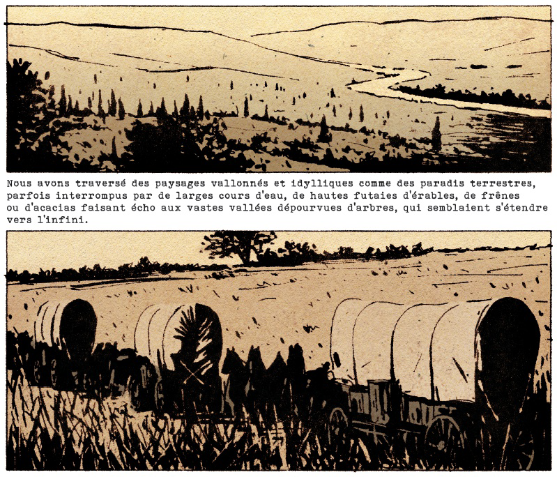 Les pages se tournent avec une gourmandise aussi bien pour le récit que le rendu graphique. Le personnage principal est attachant. J’avais envie qu’il soit même réel malgré ce qui se passe à la fin. J’aurais voulu découvrir sa biographie pour savoir qu’elle était la partie fictionnelle de la bd et voir quelques clichés. Mais tout est pure invention qui doit tout de même refléter cet esprit de conquête américaine. Et aussi le fait que l’état minimise les tueries indiennes et déconsidère ces peuples.
