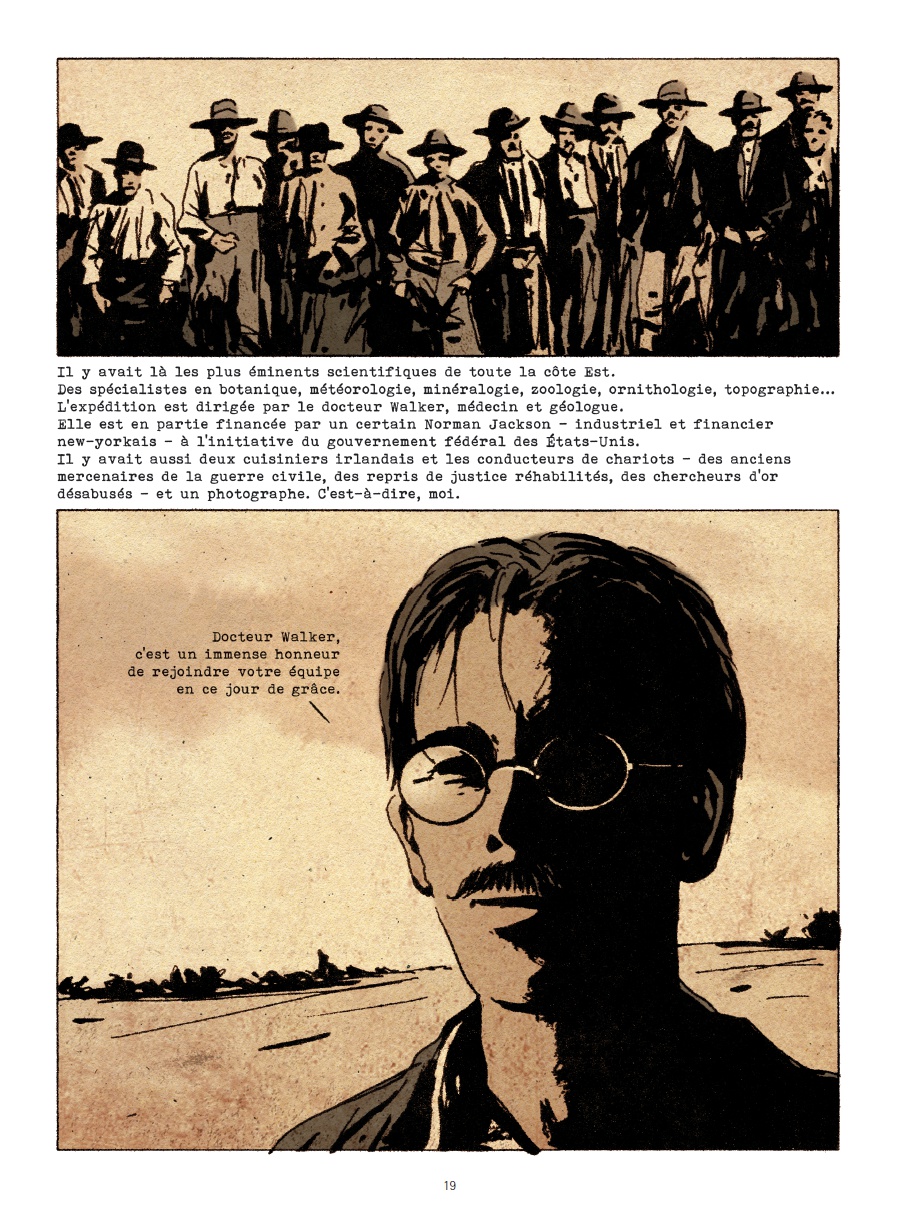 Son quotidien de portraitiste auprès des notables et de leur famille lui permet un revenu confortable. Il peut vivre tranquillement avec son épouse, Marjorie et leurs deux jeunes enfants. Mais pourtant, cela lui ne suffit pas. Alors, en 1867, il va prendre le train pour Saint-Louis pour rejoindre une mission d’exploration dans Les Rocheuses. C’est le gouvernement qui finance l’expédition. L’objectif est de cartographier ces grands espaces ainsi que de savoir s’il y aurait des gisements d’or et de charbon sans oublier la possibilité de coloniser ces nouvelles terres.