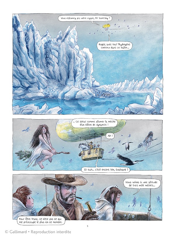 Stéphane Melchior, à la plume et Clément Oubrerie poursuivent l’adaptation d’une série de Philip Pullman. Leur osmose de travail se ressent sur le côté très agréable de lecture. Il y a du suspens très bien dosé à chaque page. Je voulais savoir ce qui allait arriver à Lyra, qu’elle est ce grand secret autour d’elle, pourquoi autant de recherche sur la poussière… Manifestement, j’aurais des éléments de réponse dans le tome 4. Les scènes de voyages avec des échanges verbaux se ponctuent par des scènes de combat parfois sanglantes. Le dosage est finement orchestré pour toujours donné envie de tourner les pages. Et arrivée à la fin, la déception, c’est déjà fini. En plus, l’action finale amène à de nouvelles aventures palpitantes. Je ne vais pas avoir le choix de lire la suite dès qu’elle sera publiée.