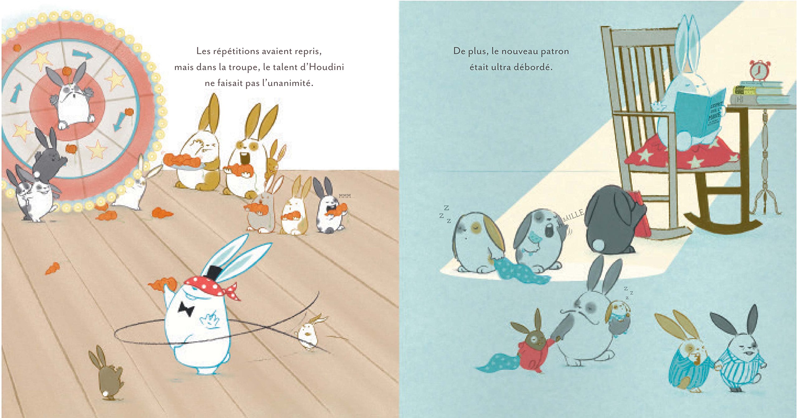 Il était une fois un magicien très talentueux. Il s’appelait M. Lapin et avait un spectacle qui promettait sous le nom « Tout est magie ». Ces spectacles sont vraiment extraordinaires. C’est grâce surtout à son excellent assistant Houdini Bouquin. Les autres lapins sont un peu indisciplinés et sortent parfois du chapeau sans qu’on leur demande rien. Mais, il arrive à les motiver et à leur expliquer avec beaucoup de tact les numéros. Il veille à tout avant et après le spectacle. Sans oublier aussi de faire attention aux petits lapins.